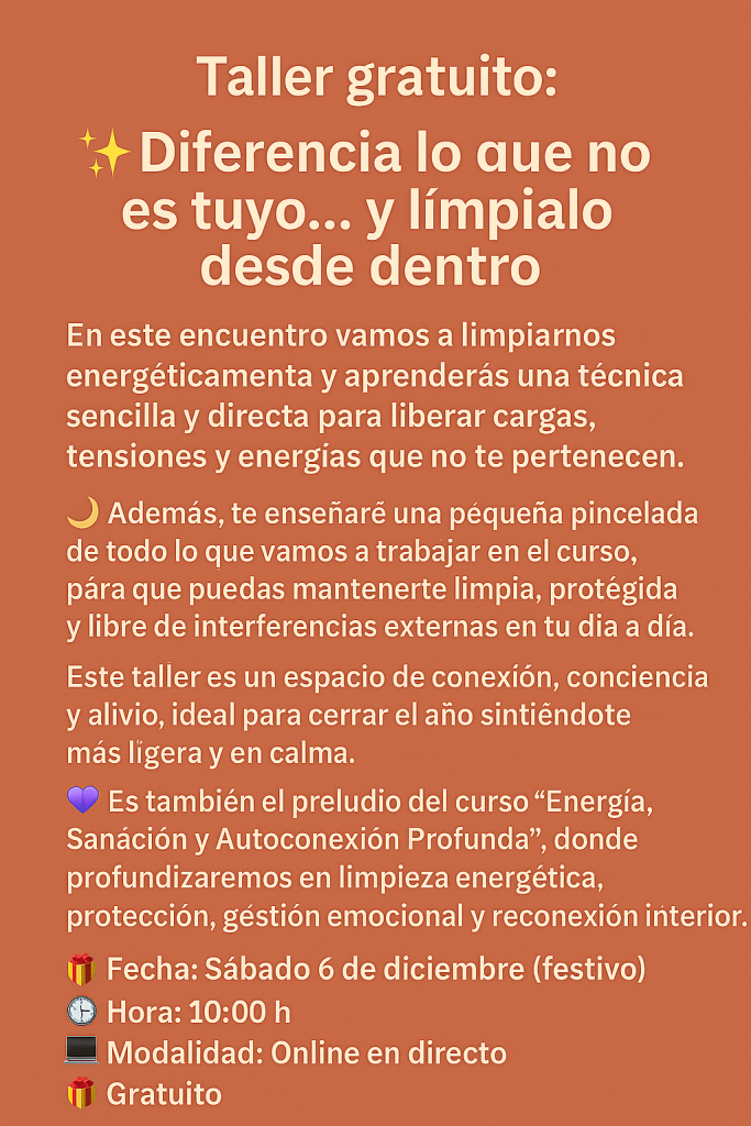 Además, durante el taller te explicaré los contenidos y estructura del curso completo, por si deseas profundizar más adelante.