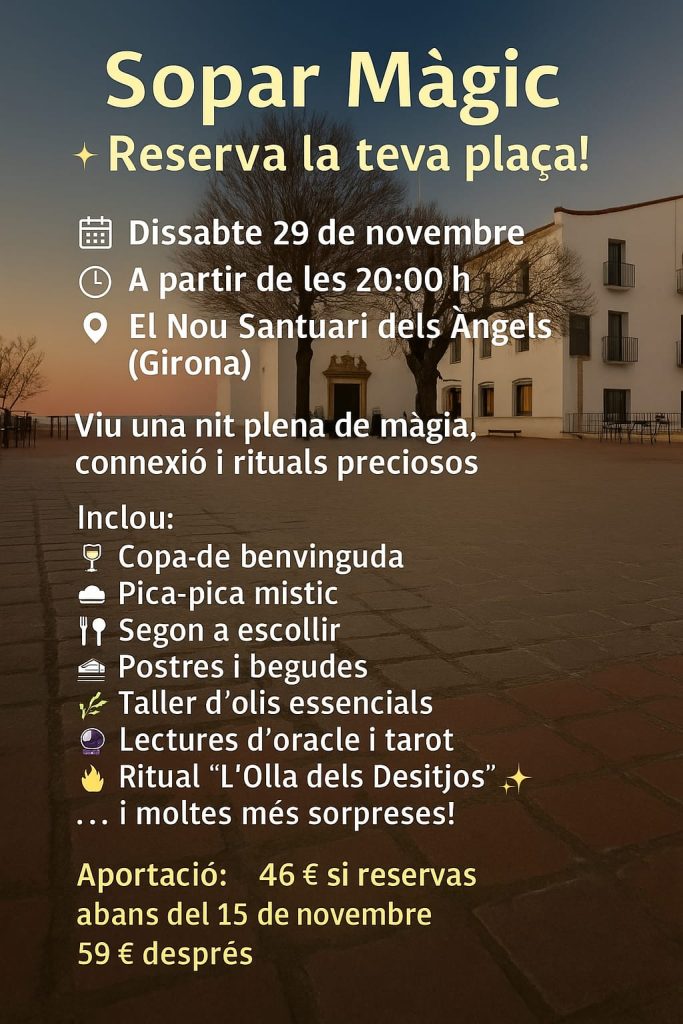 ✨ SOPAR DELS DESITJOS I LA MÀGIA INTERIOR / CENA TEMATICA CON ORÁCULO, TAROT Y MAGIA – Reserva tu plaza ✨